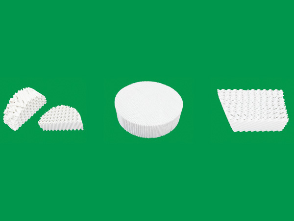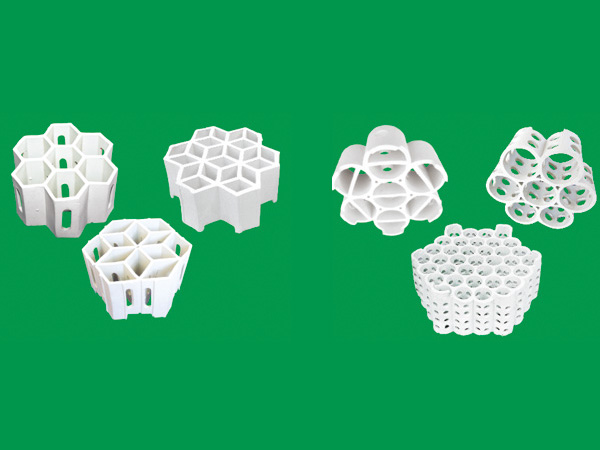 陶瓷規整填料與散堆填料相比具有效率高,降壓低,處理量大,持液量小,放大效應不明顯,操作彈性大等一系列優點。它由許多具有相同幾何形狀的填料單元體構成。陶瓷規整波紋